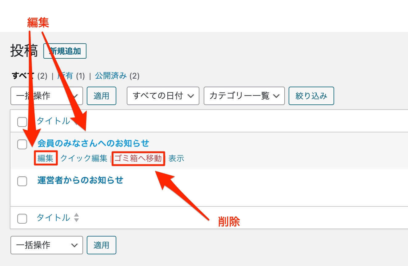 タイトル、本文、カテゴリー、アイキャッチに登録した内容は会員には上図のように表示されます。