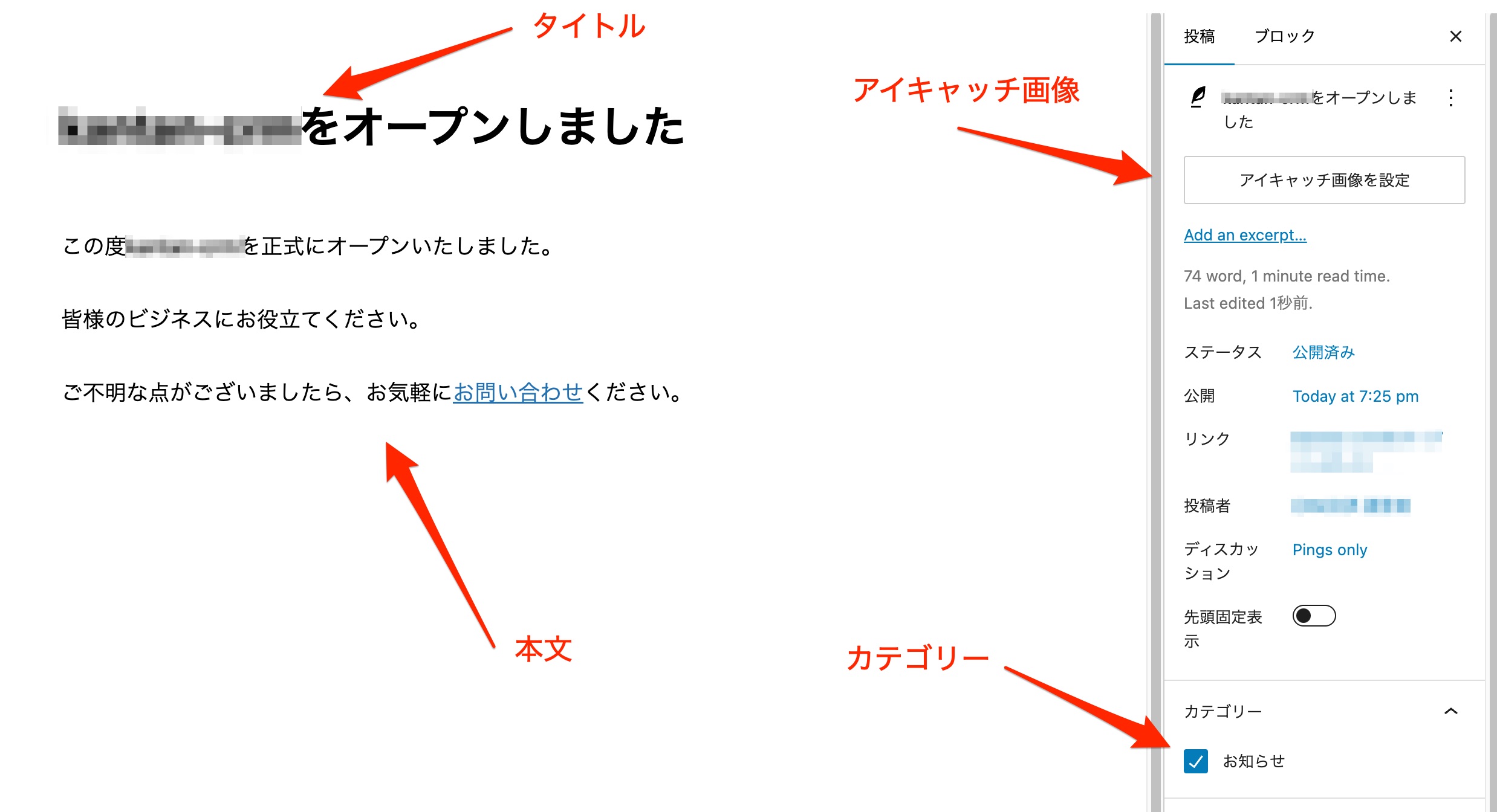 タイトル、本文、カテゴリー、アイキャッチ